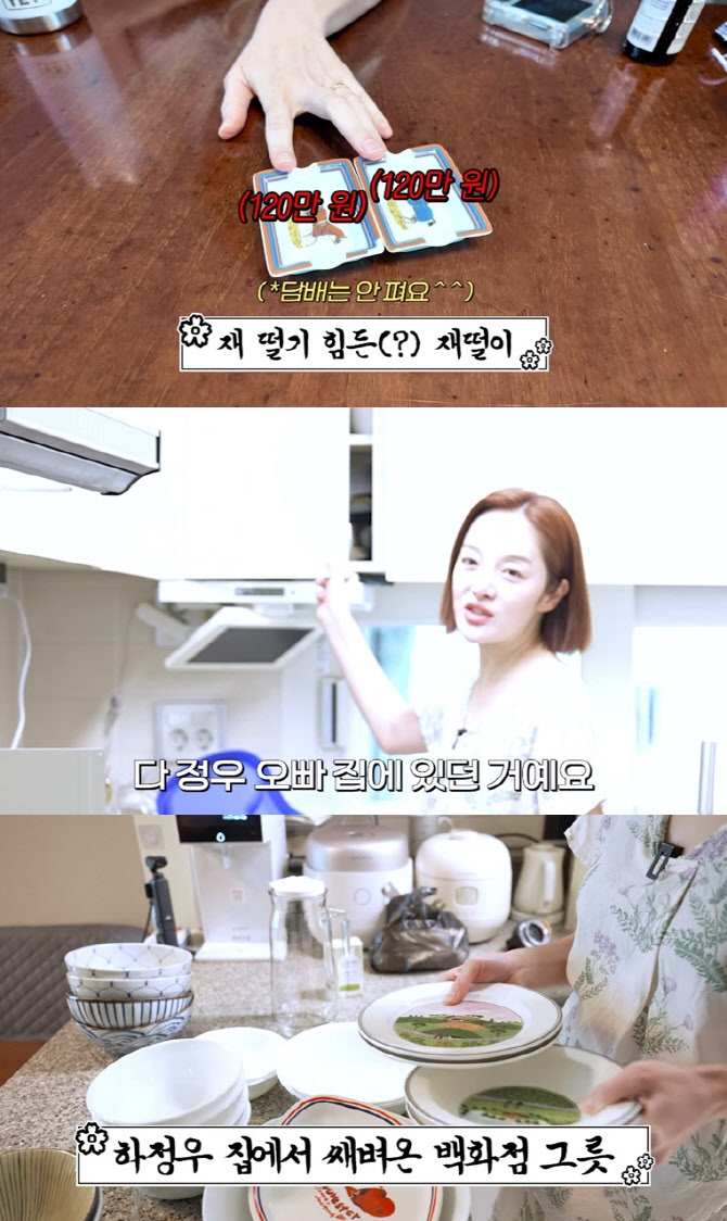 황보라는 하정우의 집에서 가져온 그릇 세트를 소개하며 “제 돈 주고 산 게 하나도 없다”고 말했다. 이어 “다들 접시에 로망이 있는 거 같은데 나는 건물이나 집에 대한 로망이 있다”며 “요즘에 청약을 미친듯이 한다. 근데 오늘 떨어졌다”고 덧붙여 웃음을 자아냈다.